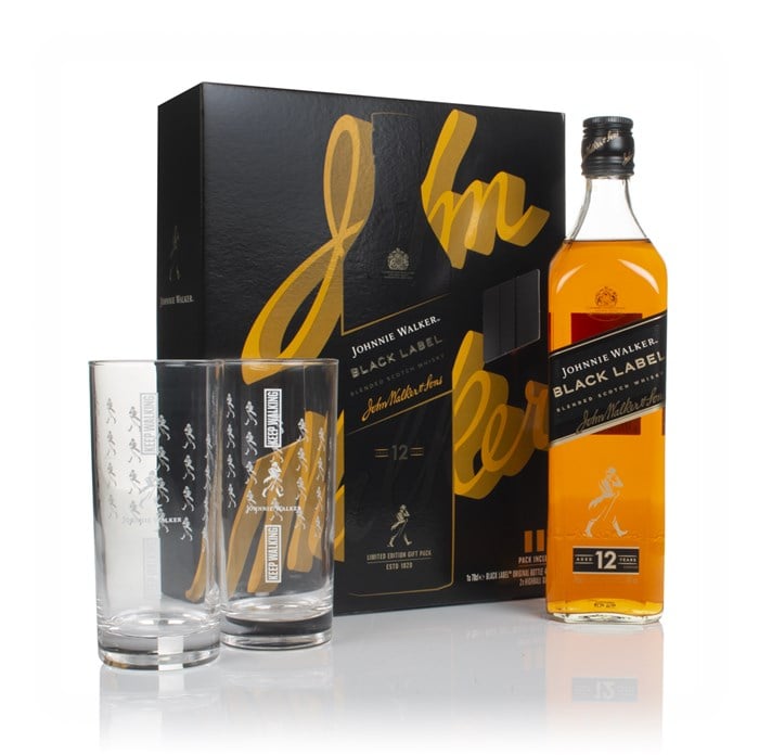 Johnnie Walker Black Label 12 Year Old with 2x Highball Glasses Whisky 70cl